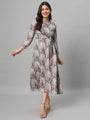 Elevate your style with this Abstract Print A-Line Midi Dress, a perfect blend of modern design and timeless elegance. Featuring an eye-catching abstract pattern in muted tones, this dress is crafted to flatter every figure with its A-line silhouette.